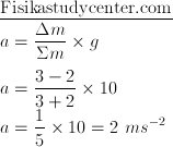 Dua benda bermassa 2 kg dan 3 kg diikat tali kemudian ditautkan pada katrol yang massanya diabaikan seperti gambar. Bila besar percepatan gravitasi 10 m.s−2, gaya tegangan tali yang dialami sistem adalah....