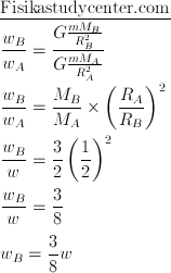 Perbandingan massa planet A dan B adalah 2 : 3 sedangkan perbandingan jari-jari planet A dan B adalah 1 : 2. Jika berat benda di planet A adalah w, maka berat benda tersebut di planet B adalah....