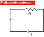 Berikut ini adalah sebuah rangkaian listrik sederhana yang terdiri sebuah baterai sebagai sumber tegangan listrik ε dan sebuah beban resistor R.